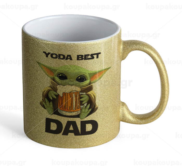 Yoda Best Dad, Κούπα Χρυσή Glitter που γυαλίζει, κεραμική, 330ml