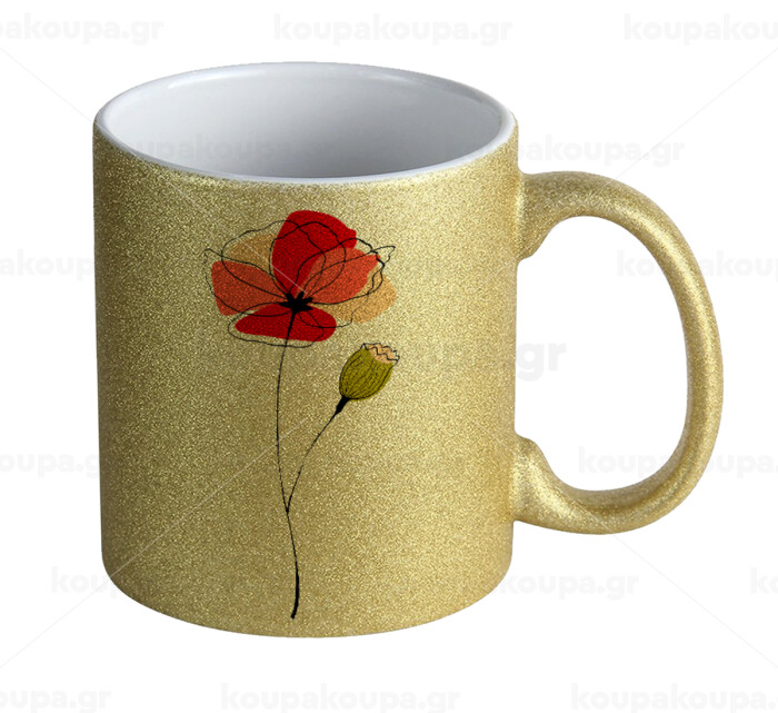 Red poppy flowers papaver, Κούπα Χρυσή Glitter που γυαλίζει, κεραμική, 330ml