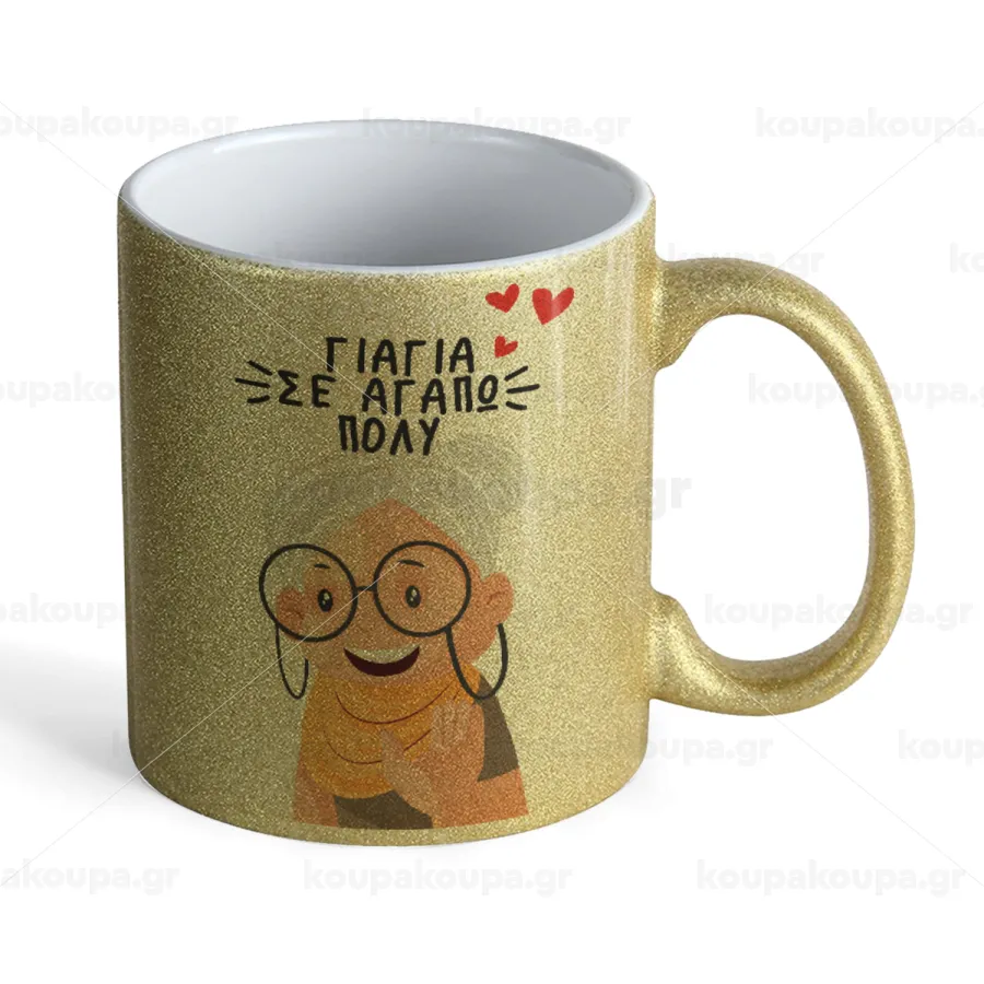 Γιαγιά σε αγαπώ πολύ!, Κούπα Χρυσή Glitter που γυαλίζει, κεραμική, 330ml