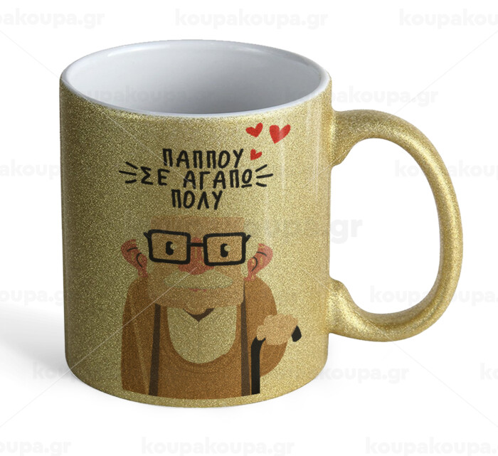 Παππού σε αγαπώ πολύ!, Κούπα Χρυσή Glitter που γυαλίζει, κεραμική, 330ml