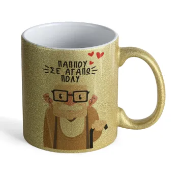 Παππού σε αγαπώ πολύ!, Κούπα Χρυσή Glitter που γυαλίζει, κεραμική, 330ml