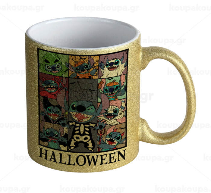 Stitch Halloween, Κούπα Χρυσή Glitter που γυαλίζει, κεραμική, 330ml