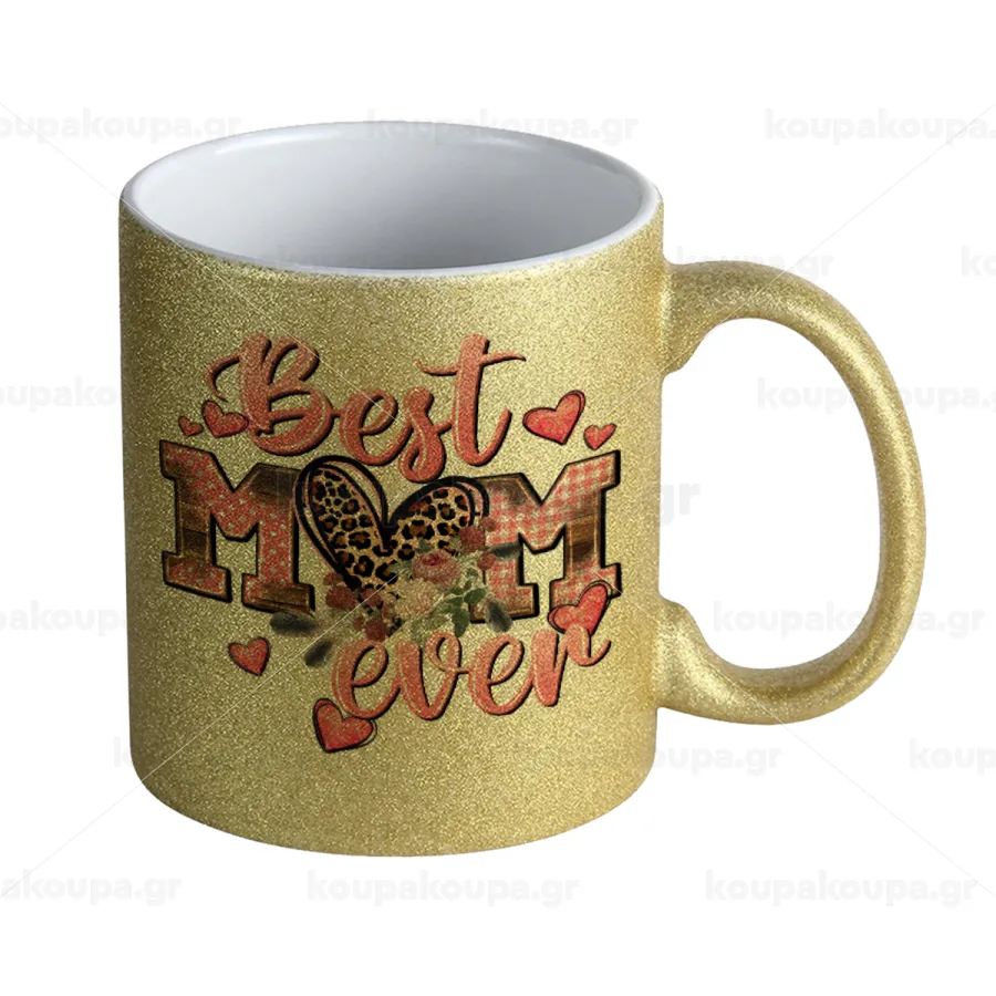 Best mom ever Mother's Day, Κούπα Χρυσή Glitter που γυαλίζει, κεραμική, 330ml