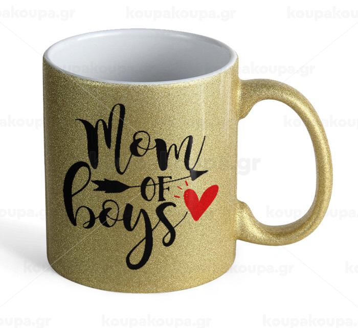 Mom of boys, Κούπα Χρυσή Glitter που γυαλίζει, κεραμική, 330ml
