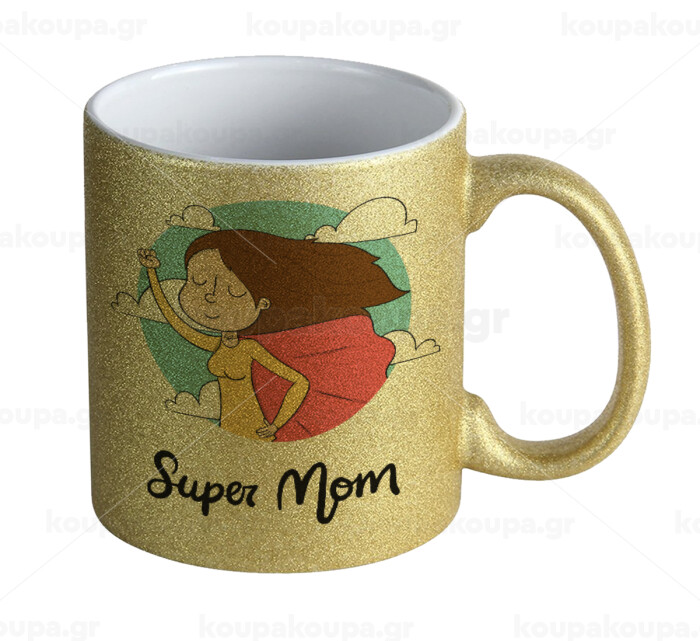 Super mom, Κούπα Χρυσή Glitter που γυαλίζει, κεραμική, 330ml