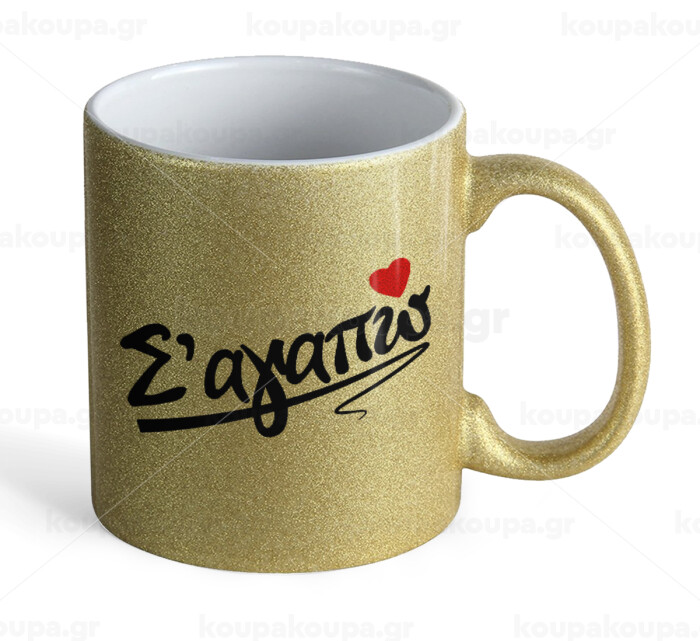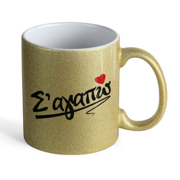 Σ΄ αγαπώ!!!, Κούπα Χρυσή Glitter που γυαλίζει, κεραμική, 330ml