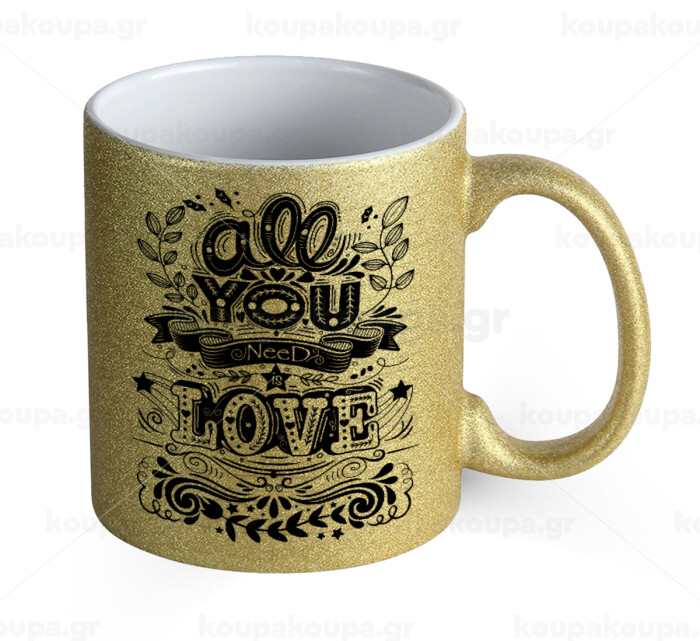 All you need is love, Κούπα Χρυσή Glitter που γυαλίζει, κεραμική, 330ml