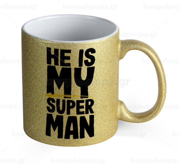 He is my superman, Κούπα Χρυσή Glitter που γυαλίζει, κεραμική, 330ml