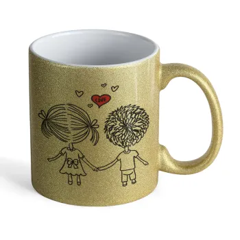 Hold my hand for ever, Κούπα Χρυσή Glitter που γυαλίζει, κεραμική, 330ml