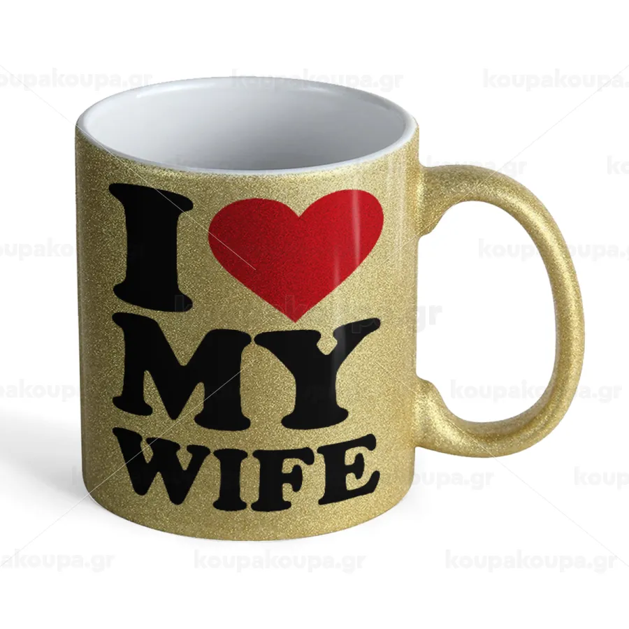 I Love my Wife, Κούπα Χρυσή Glitter που γυαλίζει, κεραμική, 330ml