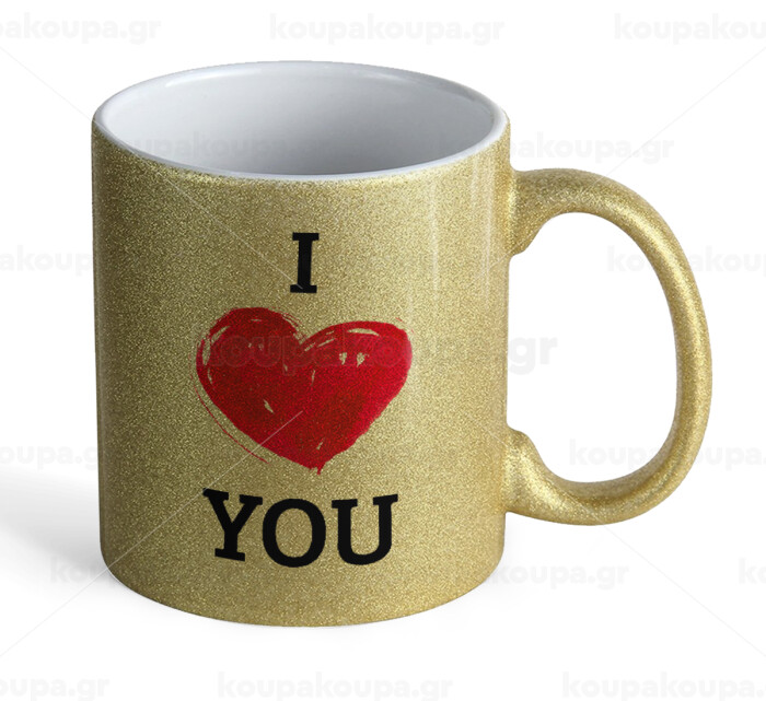 I Love You, Κούπα Χρυσή Glitter που γυαλίζει, κεραμική, 330ml