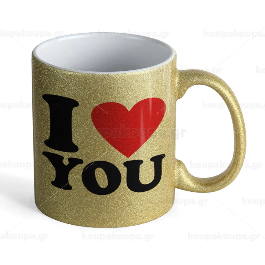 I LOVE YOU, Κούπα Χρυσή Glitter που γυαλίζει, κεραμική, 330ml