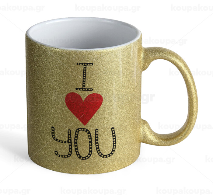 I Love You small dots, Κούπα Χρυσή Glitter που γυαλίζει, κεραμική, 330ml