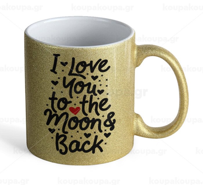 I love you to the moon and back with hearts, Κούπα Χρυσή Glitter που γυαλίζει, κεραμική, 330ml