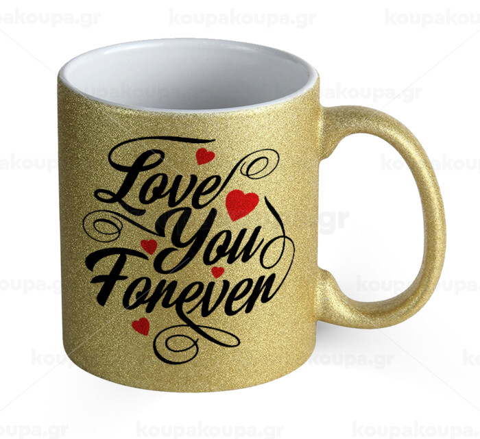 Love you forever, Κούπα Χρυσή Glitter που γυαλίζει, κεραμική, 330ml