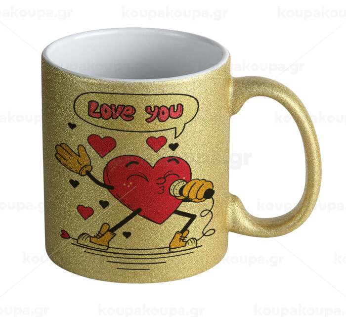 LOVE YOU SINGER!!!, Κούπα Χρυσή Glitter που γυαλίζει, κεραμική, 330ml