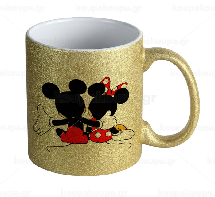 mickey and minnie hags, Κούπα Χρυσή Glitter που γυαλίζει, κεραμική, 330ml