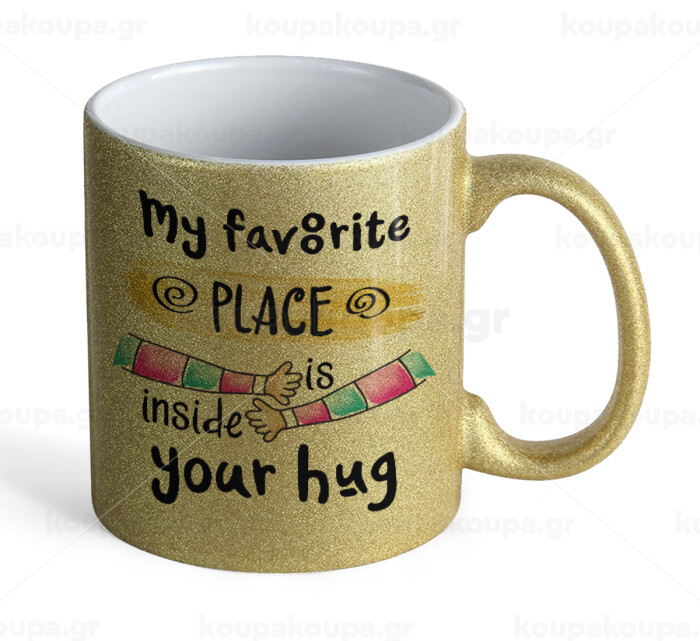 My favorite place is inside your HUG, Κούπα Χρυσή Glitter που γυαλίζει, κεραμική, 330ml
