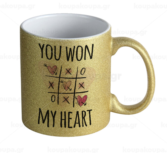 You won my heart, Κούπα Χρυσή Glitter που γυαλίζει, κεραμική, 330ml