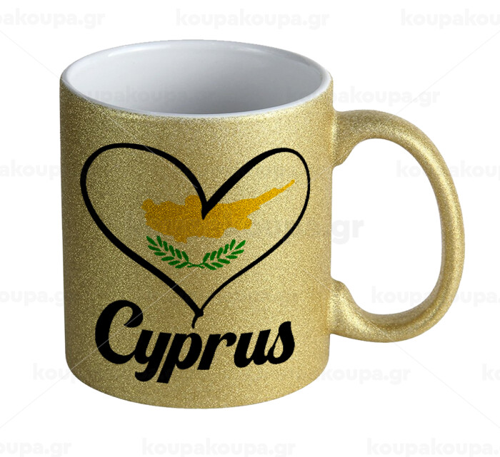 Cyprus flag, Κούπα Χρυσή Glitter που γυαλίζει, κεραμική, 330ml