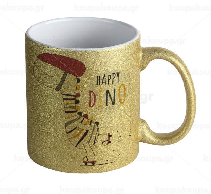 Happy Dino, Κούπα Χρυσή Glitter που γυαλίζει, κεραμική, 330ml