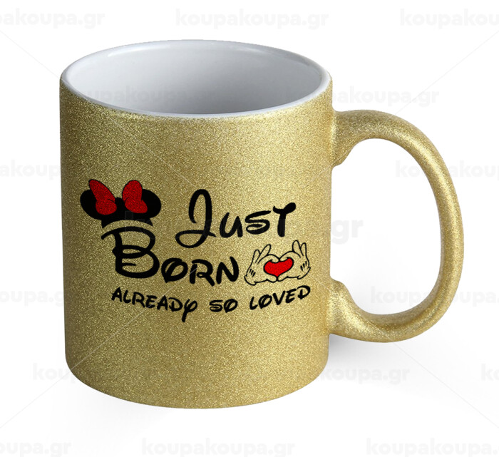 Just born already so loved, Κούπα Χρυσή Glitter που γυαλίζει, κεραμική, 330ml
