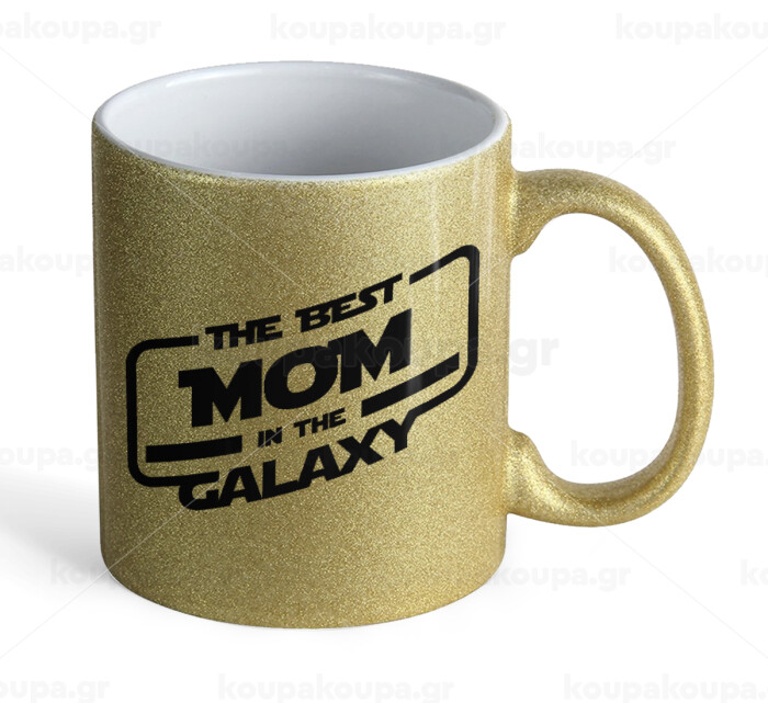 The Best MOM in the Galaxy, Κούπα Χρυσή Glitter που γυαλίζει, κεραμική, 330ml