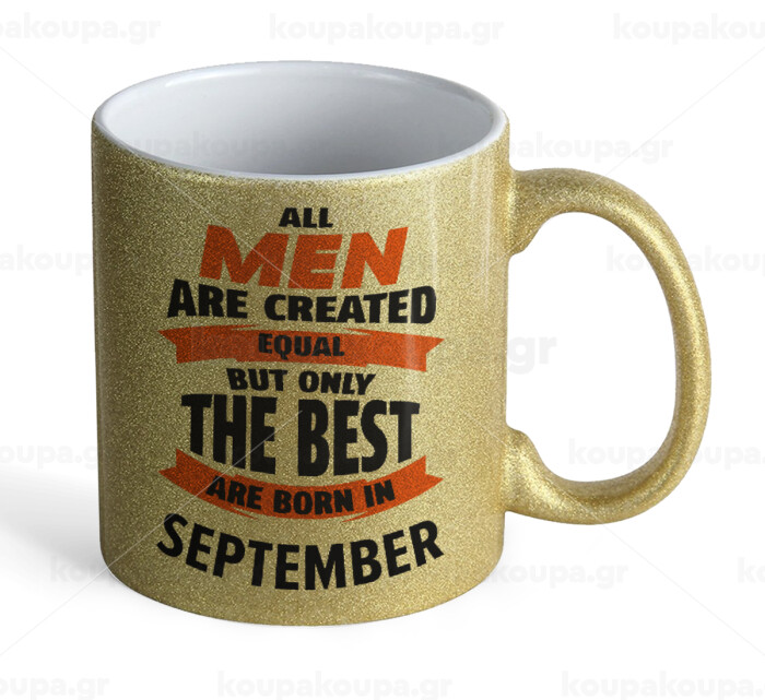 All men are created equal but only the best are born in September, Κούπα Χρυσή Glitter που γυαλίζει, κεραμική, 330ml