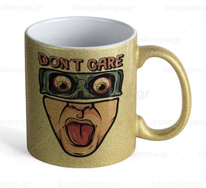 Don't Care, Κούπα Χρυσή Glitter που γυαλίζει, κεραμική, 330ml