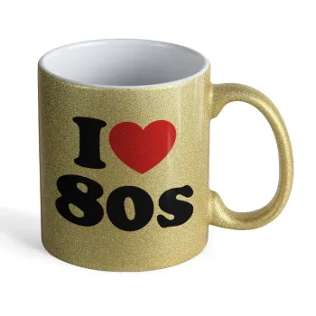 I Love 80s, Κούπα Χρυσή Glitter που γυαλίζει, κεραμική, 330ml