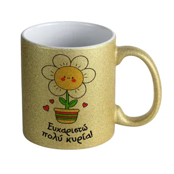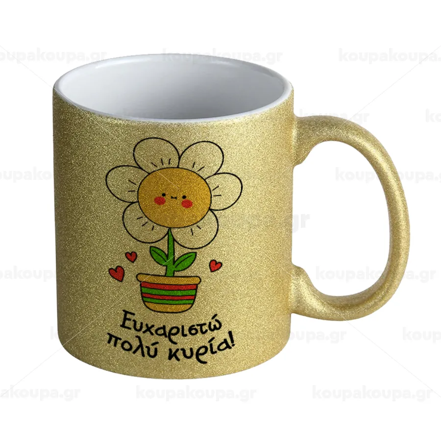 Ευχαριστώ πολύ κυρία!!!, Κούπα Χρυσή Glitter που γυαλίζει, κεραμική, 330ml