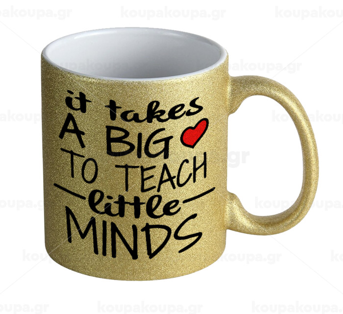 It takes big heart to teach little minds, Κούπα Χρυσή Glitter που γυαλίζει, κεραμική, 330ml