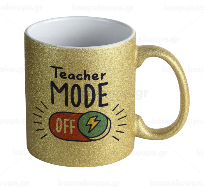 Teacher mode, Κούπα Χρυσή Glitter που γυαλίζει, κεραμική, 330ml