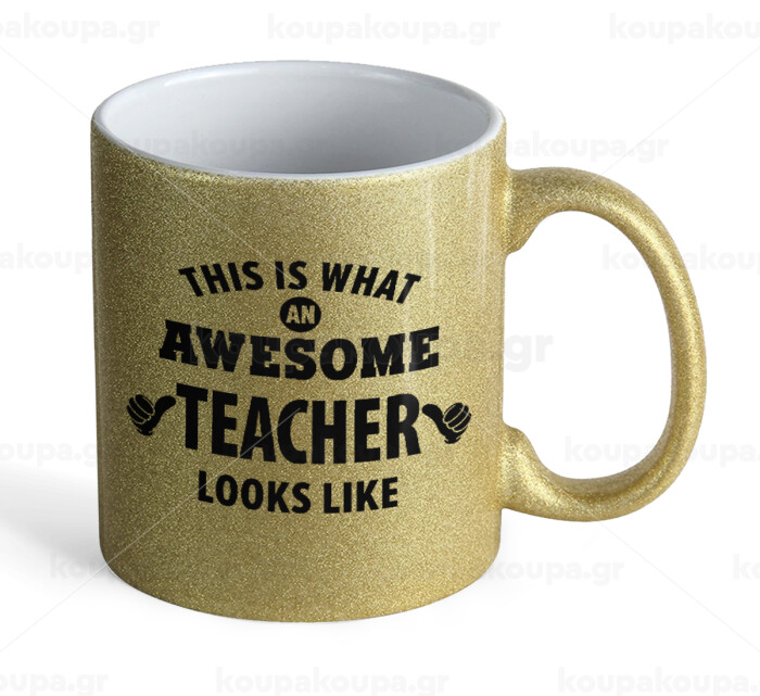 This is what an awesome teacher looks like hands!!! , Κούπα Χρυσή Glitter που γυαλίζει, κεραμική, 330ml