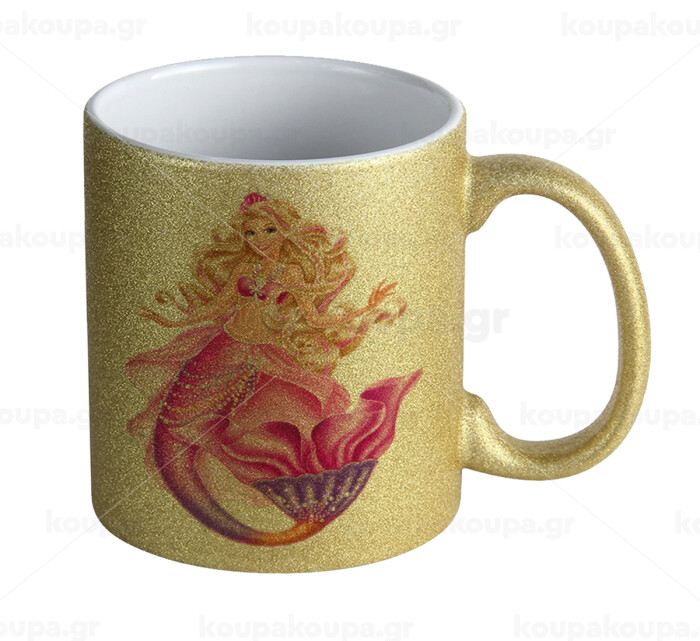 Barbie γοργόνα , Κούπα Χρυσή Glitter που γυαλίζει, κεραμική, 330ml