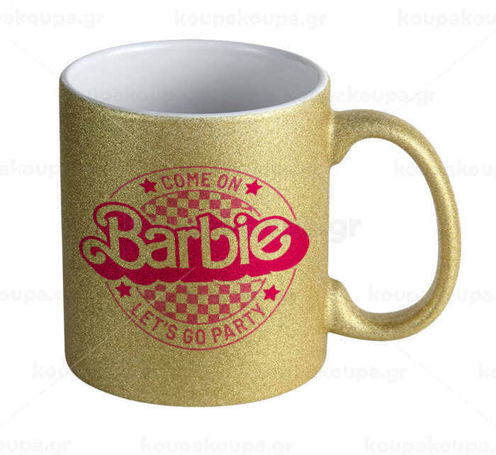 Come On Barbie Lets Go Party , Κούπα Χρυσή Glitter που γυαλίζει, κεραμική, 330ml