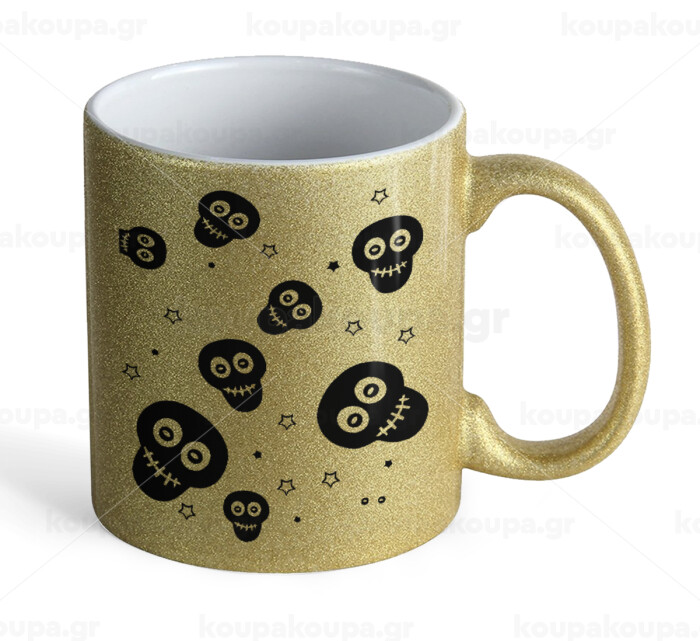 Skull avatar, Κούπα Χρυσή Glitter που γυαλίζει, κεραμική, 330ml