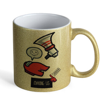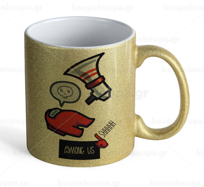 Among US Shhhh!!!, Κούπα Χρυσή Glitter που γυαλίζει, κεραμική, 330ml