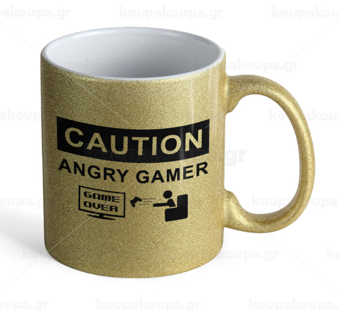 Caution, angry gamer!, Κούπα Χρυσή Glitter που γυαλίζει, κεραμική, 330ml