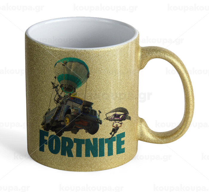 Fortnite Bus, Κούπα Χρυσή Glitter που γυαλίζει, κεραμική, 330ml