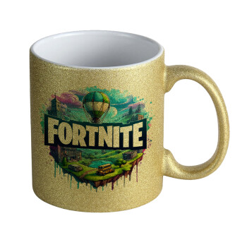 Fortnite land, Κούπα Χρυσή Glitter που γυαλίζει, κεραμική, 330ml