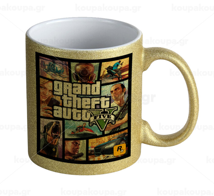 GTA V, Κούπα Χρυσή Glitter που γυαλίζει, κεραμική, 330ml