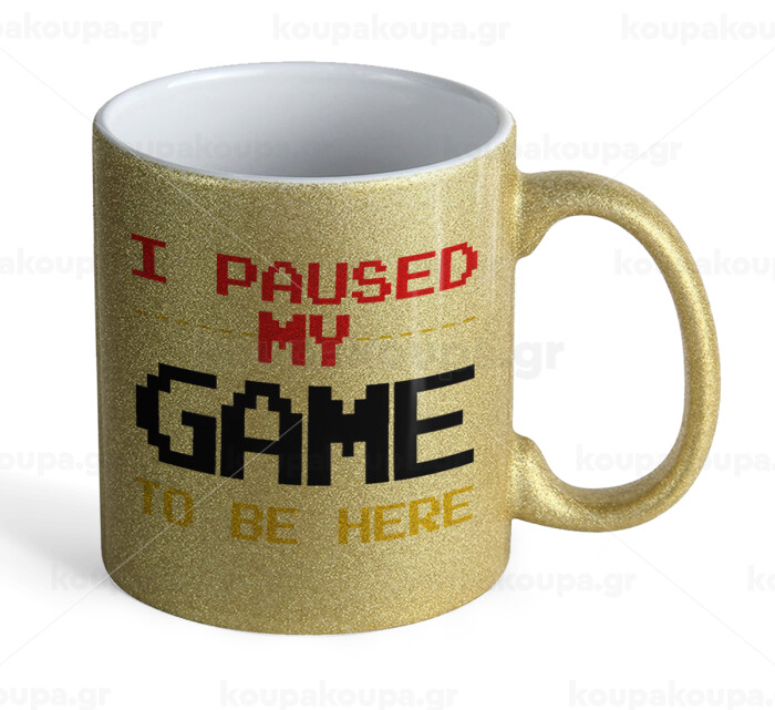 I paused my game to be here, Κούπα Χρυσή Glitter που γυαλίζει, κεραμική, 330ml