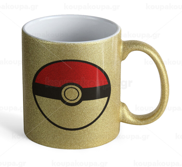 Pokemon ball, Κούπα Χρυσή Glitter που γυαλίζει, κεραμική, 330ml