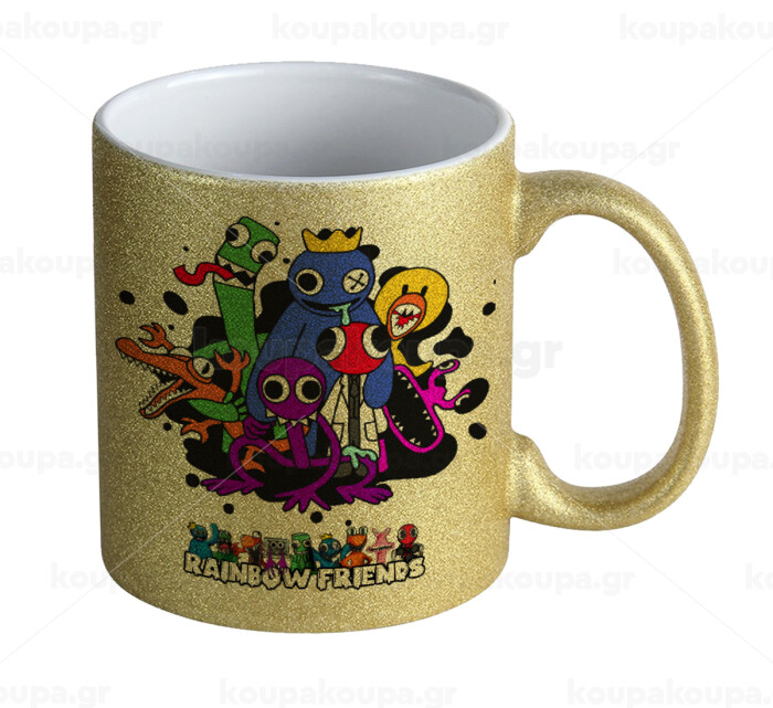 Rainbow friends, Κούπα Χρυσή Glitter που γυαλίζει, κεραμική, 330ml