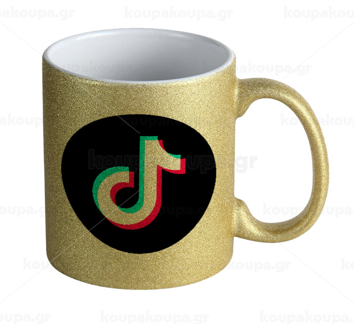TikTok, Κούπα Χρυσή Glitter που γυαλίζει, κεραμική, 330ml