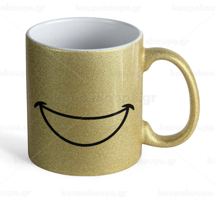 Χαμογέλα, Κούπα Χρυσή Glitter που γυαλίζει, κεραμική, 330ml