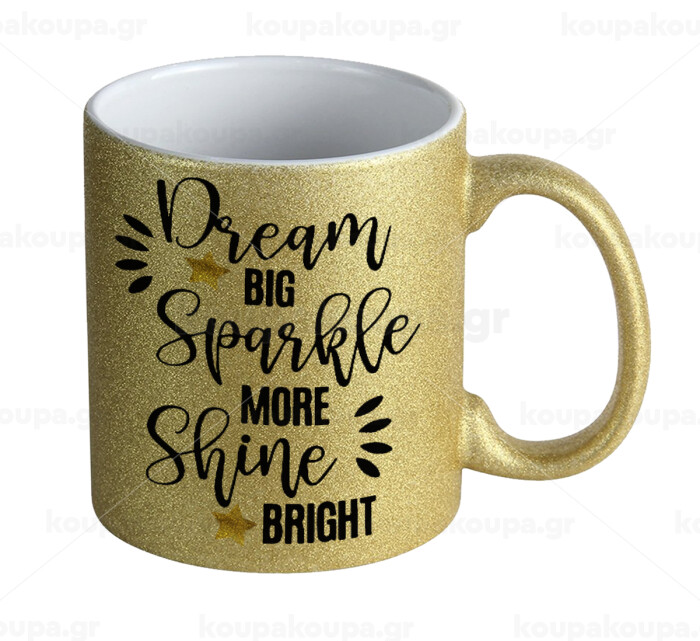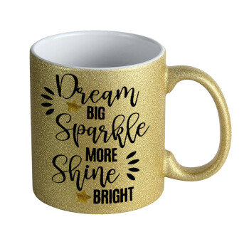 Dream big, Sparkle more, Shine bright, Κούπα Χρυσή Glitter που γυαλίζει, κεραμική, 330ml