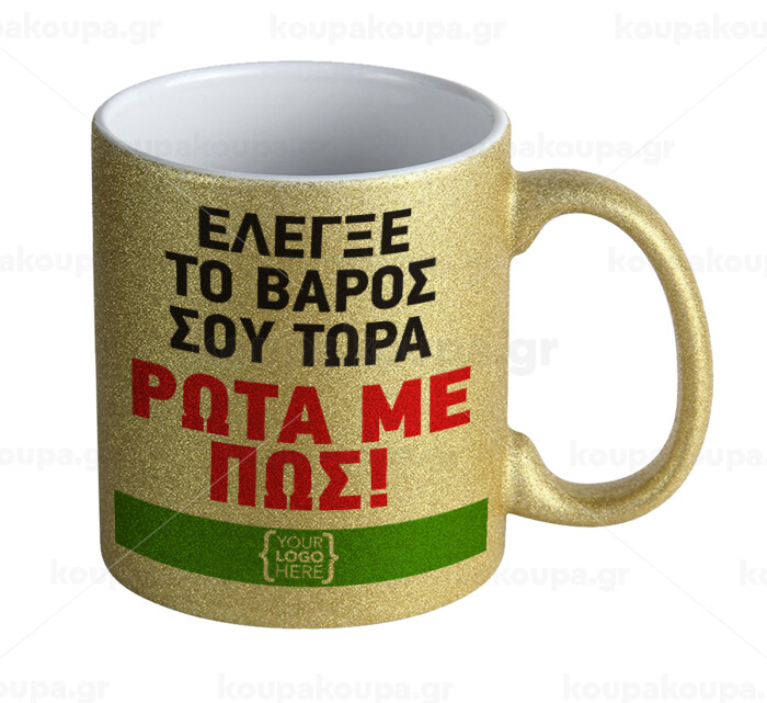 Έλεγξε το βάρος σου ρώτα με πως! {your logo here}, Κούπα Χρυσή Glitter που γυαλίζει, κεραμική, 330ml