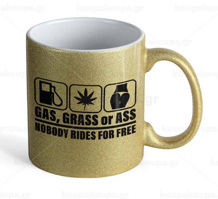 Gas, Grass or Ass, Κούπα Χρυσή Glitter που γυαλίζει, κεραμική, 330ml